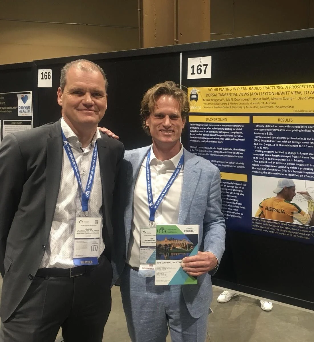 The Flinders-Holland Cotutelle Program traces its origins to the collaborative vision of Professor Job Doornberg and Professor Ruurd Jaarsma, both orthopaedic trauma specialists and distinguished researchers in orthopaedic surgery. In 2016, having just having finished his Orthopaedic residency in the Netherlands, Prof. Dr. Doornberg relocated to Adelaide to undertake an Orthopaedic Trauma Fellowship at Flinders Medical Centre (FMC) under the guidance of Prof. Dr. Ruurd Jaarsma. The Harvard-Holland research program had already proven to be fruitful, and the professors recognised a similar opportunity to establish a transcontinental collaboration between the Netherlands and Australia.